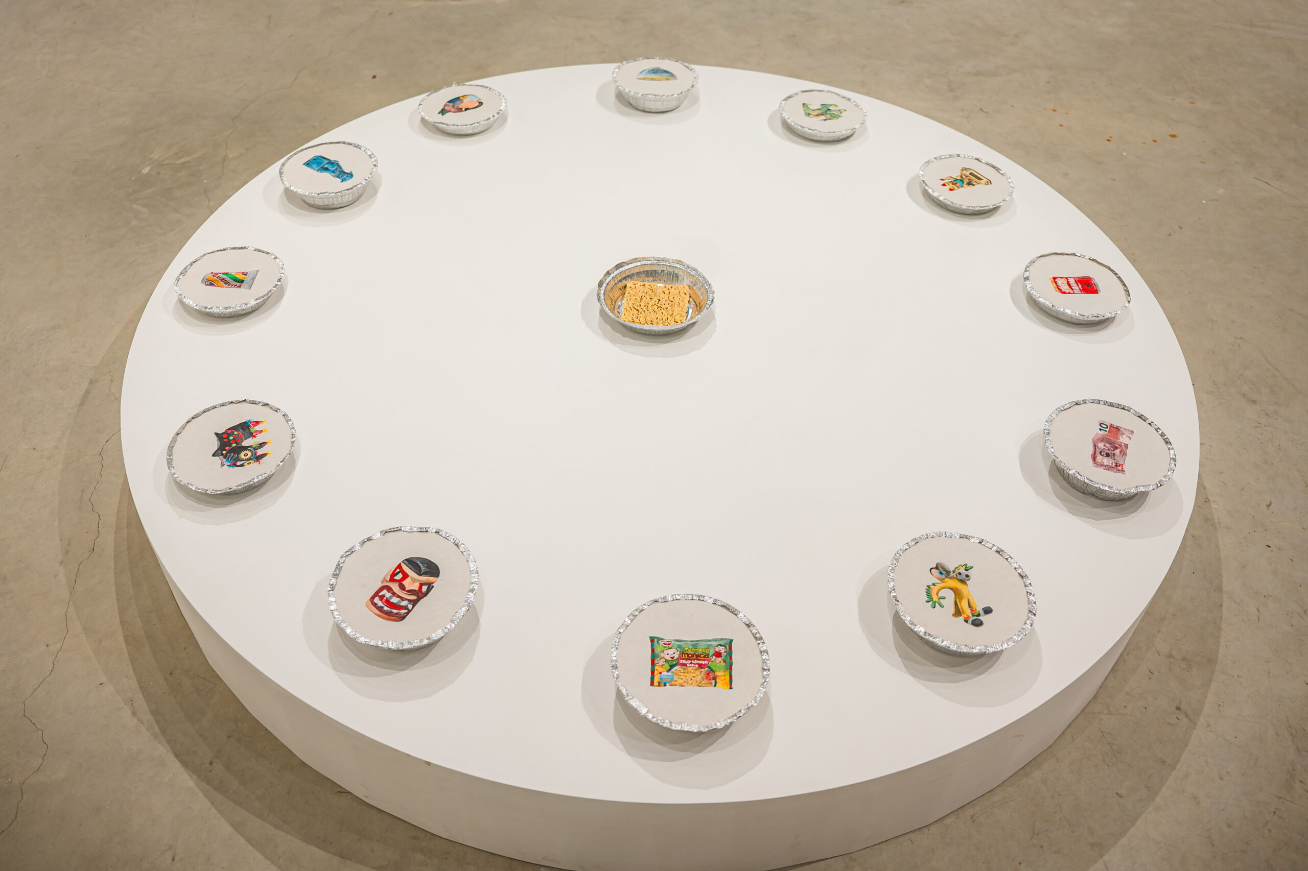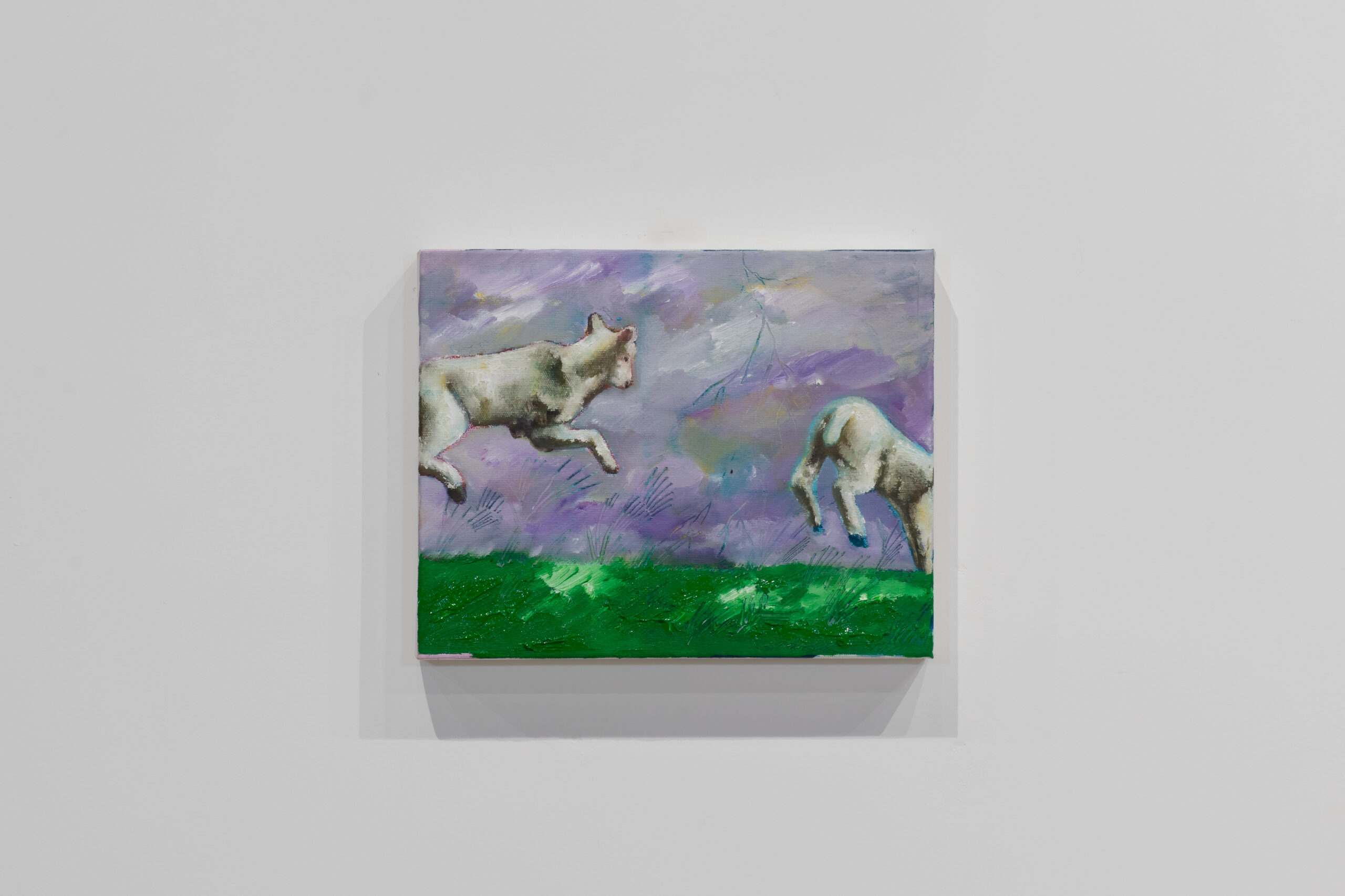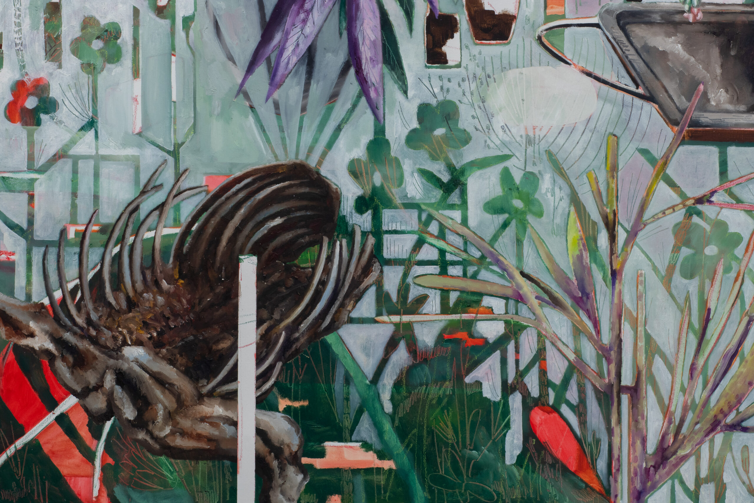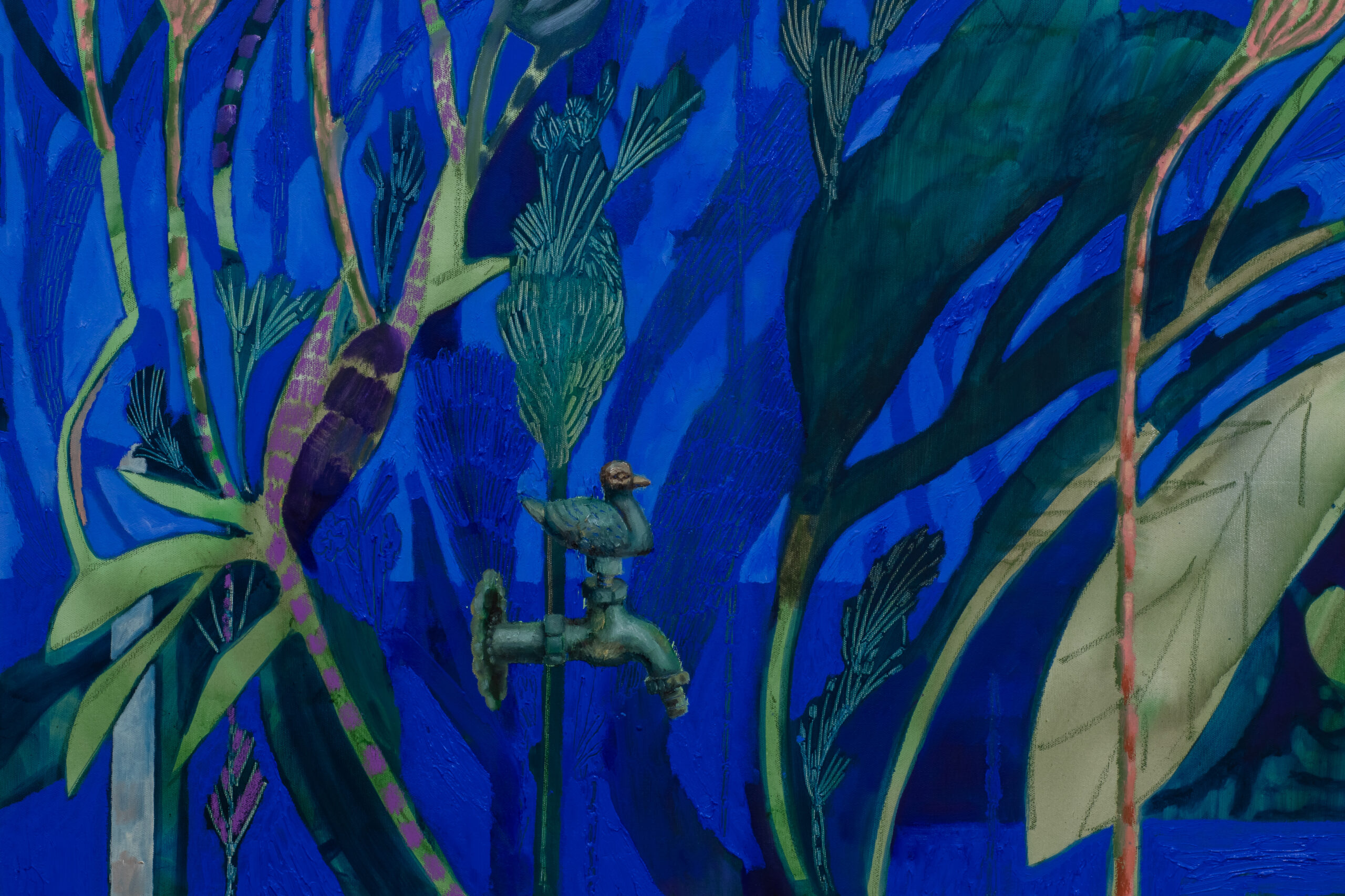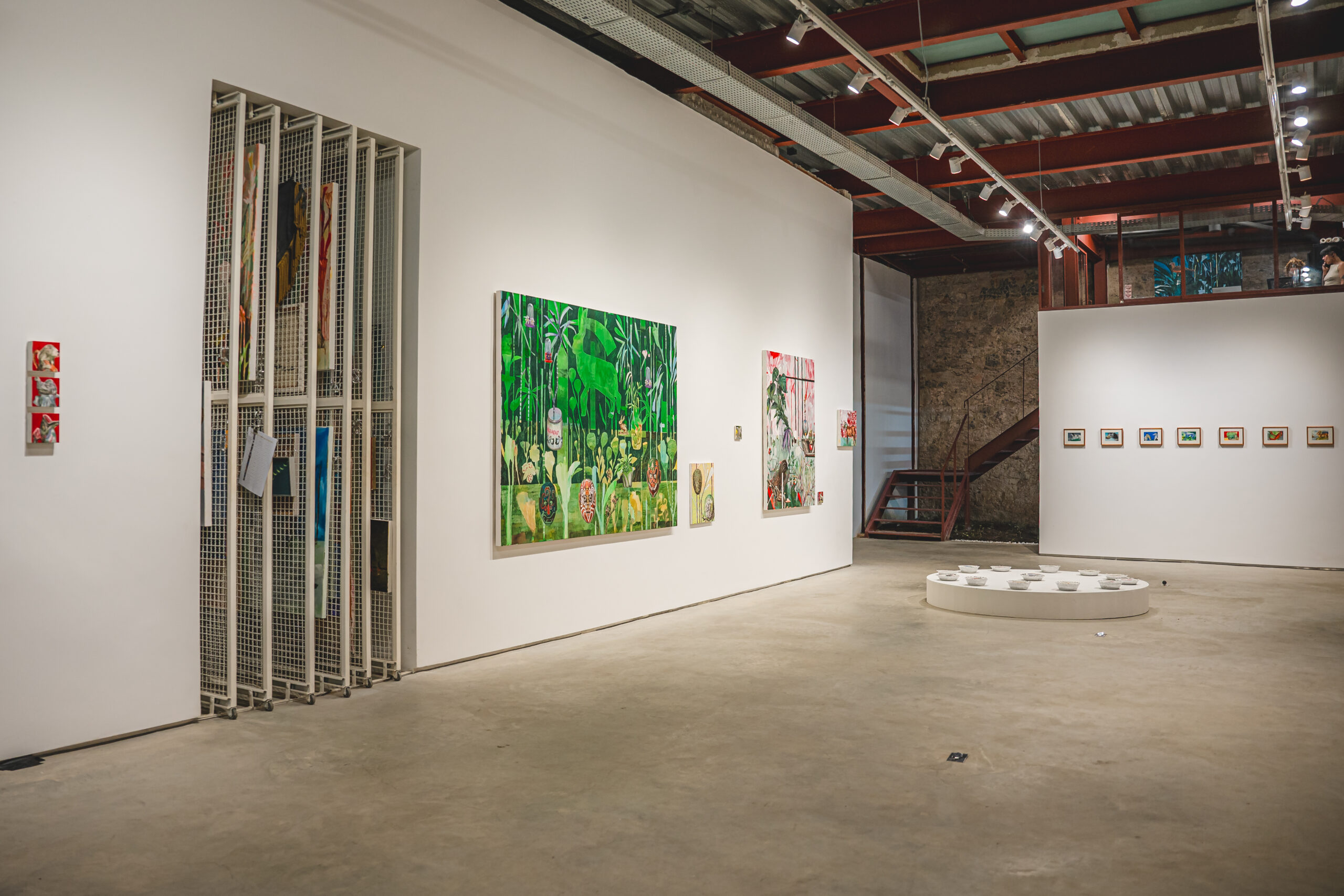 A dimensionalidade, demasiadamente humana, é corrompida. O que é próximo torna-se limitado, ele é capaz de navegar por algo que é mais expandido, mais vasto. Alado nos conta, todavia, que o agora é sempre fractal, e que a ideia de progresso é como uma névoa a encobrir o que realmente importa: cada pedaço brilha, a despeito das circunstâncias, toda experiência reluz. Essa exposição coletiva se permite uma pequena deriva ficcional, como se através de uma micro-narrativa ela pudesse convocar este personagem, junto às obras selecionadas, para contar uma história que tem implicações na história do mundo. A série de trabalhos que são aqui encontrados dá forma e relevo às informações que Alado nos traz. A historiografia enquanto campo estático e rígido dá lugar a um céu repleto de bichos esvoaçantes. A desestabilização por ora dá medo, mas por ora também nos inspira a um estado de redenção. O afresco em concreto de Estevan Davi é uma espécie de arqueologia reversa: o fragmento é marcado por um profundo anacronismo. O concreto, outrora entulho, é artefato mítico que conjuga o passado da técnica com o presente do material. Gabriella Garcia também transita no tempo, revisitando histórias hegemônicas e cristalizadas, propondo novas leituras. Os símbolos que ela desloca são marcadamente clássicos, buscando assentá-los no contemporâneo e com isso revirando as camadas interpretativas que são construídas ao longo da história das imagens. O vazio permeia as pinturas de Felipe Suzuki. Evocando uma técnica tão longeva quanto a natureza morta, as imagens não cessam de desejar o contemporâneo. Por isso as figuras não são capazes de se entregar por completo, tratando-se de trabalhos que são, nas palavras do artista, semi-abstratos. Por serem “quase”, não se revelam por completo, há uma sobra, a preservação do mistério, uma suspensão temporal. Já nas pinturas de Lucas Milano, os contrastes entre luz e sombra também conservam uma certa dimensão de segredo. A completude é rejeitada, são paisagens psicológicas e aladas, porque não? Como se as pinceladas fossem detentoras de um dinamismo similar ao bater de asas, revelando novas dimensões do real, na mesma medida em que escapam da ideia de totalidade. O trabalho de Renato Rios, com suas estrelas de sete pontas, lança ao espaço um simbolismo que é tanto formal quanto transcendental. A estrela, que se expande do centro, parece tensionar o espaço como se abrisse portais entre os tempos. Cada ponta sugere um fragmento de tempo que não pertence a um só momento, mas que vibra entre o passado, presente e futuro, ressoando com a ideia de uma arqueologia celestial. A estalactite de Fátima Aguiar nos transmite as conexões entre as formações naturais e as construções urbanas. Usando prata, ela recria essa forma, que habitualmente ocorre nas cavernas devido à deposição de minerais, traçando um paralelo entre a composição calcária das rochas e os edifícios, que, segundo ela, também desenvolvem uma espécie de estalactite ao longo do tempo. As obras de Gabriel Ribeiro denotam o vetoral químico e experimental do artista. Sua relação comas temporalidades é impressa de distintas formas e em diferentes superfícies, aparecendo nos procedimentos e transposições entre materialidades, que vão desde a presença da espuma de poliuretano ao uso do alumínio fundido. Em alguns casos Gabriel incita transformações a partir da ação de processos que já acontecem no mundo, como a impressão da luz do sol. Alado é como um arqueólogo das virtualidades, quando escava as camadas de terra e de ar em busca do que está enterrado ou sussurrado. A procura, aqui, pode ser algo como uma tentativa de dimensionar as origens, a partir de todos os saberes que estão nesta exposição elencados, seja de forma direta ou indireta; e de mexer nas memórias coletivas, marcadamente simbólicas. Interessam os lampejos de passado implicando no presente e no futuro, uma certa atmosfera celestial – tudo sendo, ao mesmo tempo, mágico e profano. Além da história factual, os fragmentos míticos são o que nos permite ir mais fundo na experiência diante do tempo