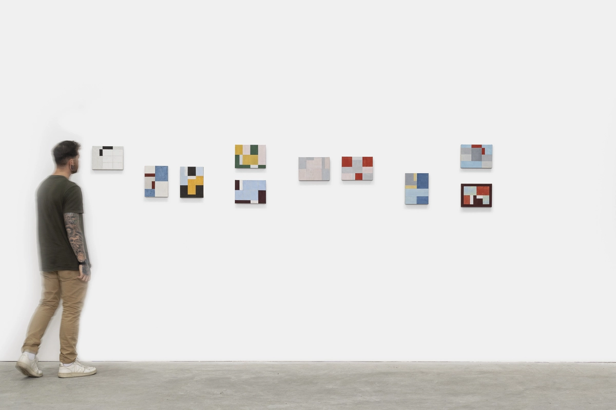 Essa lógica de combinações, regras e exceções também pode ser observada no modo como os conjuntos de obras estão organizados na exposição. Seja nos conjuntos que reúnem as releituras dos mestres ou no conjunto que reúne as derivas combinatórias alcançadas através do exercício de planificação, o espectador é convidado a desvendar as exceções produzidas pelas regras criadas pelo artista.