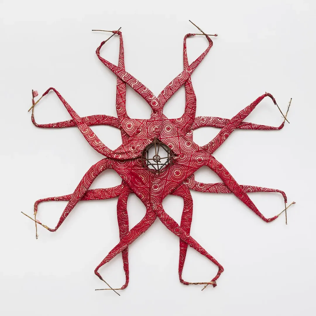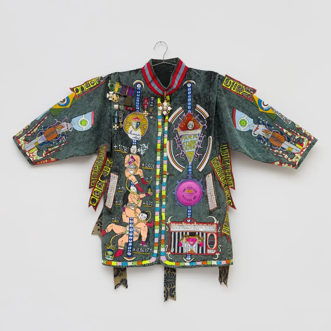Nessas construções, o corpo aparece como suporte latente, ainda que ausente, sugerido por estruturas que oscilam entre abrigo, armadura e relicário. As peças tensionam a fronteira entre objeto utilitário e artefato simbólico, ativando uma dimensão quase ritualística que atravessa toda a exposição. O acúmulo de materiais, longe de operar apenas como gesto formal, aponta para uma lógica de sobrevivência e reinvenção, onde restos e excedentes urbanos são reencenados como portadores de memória e potência.
