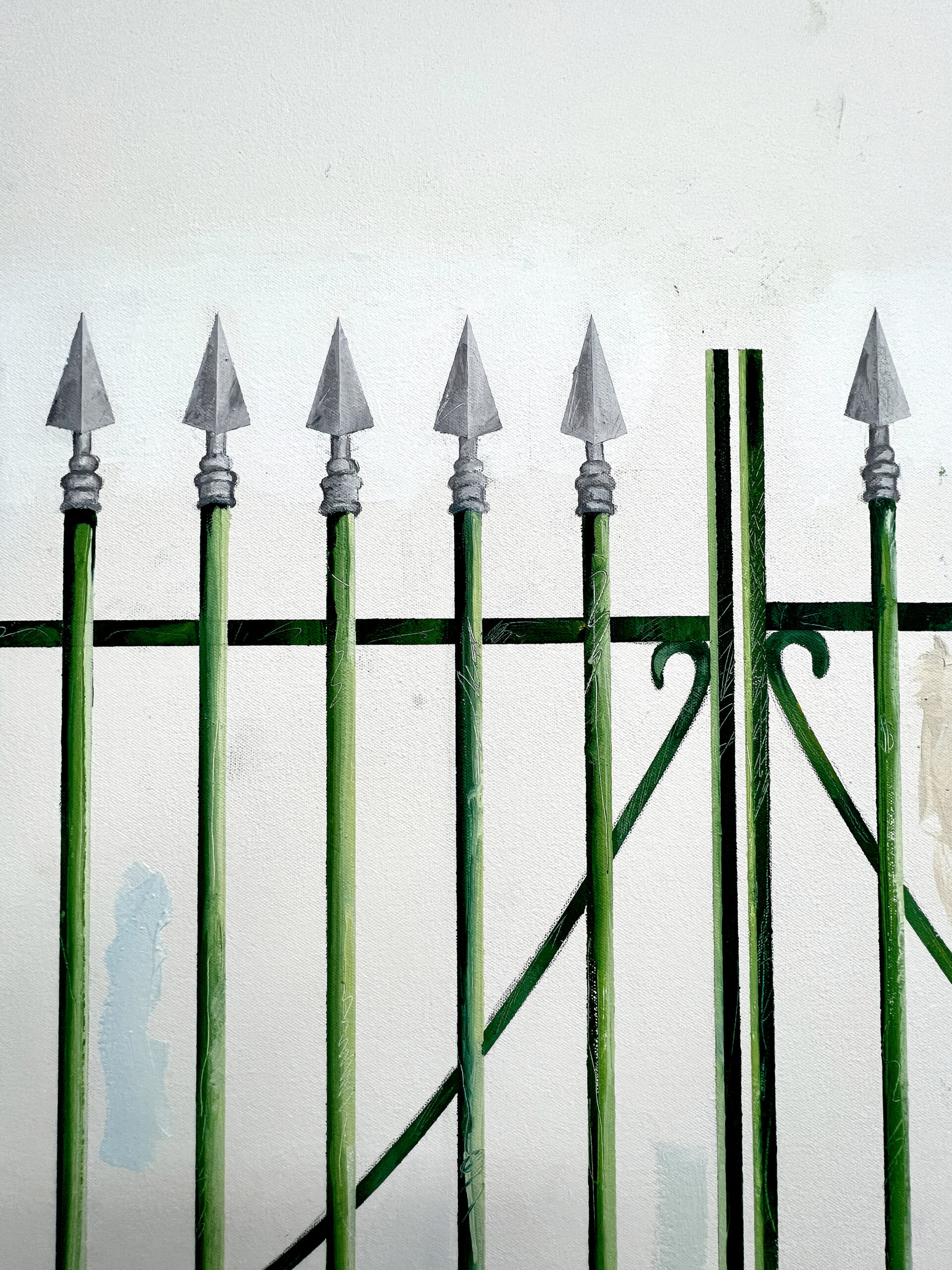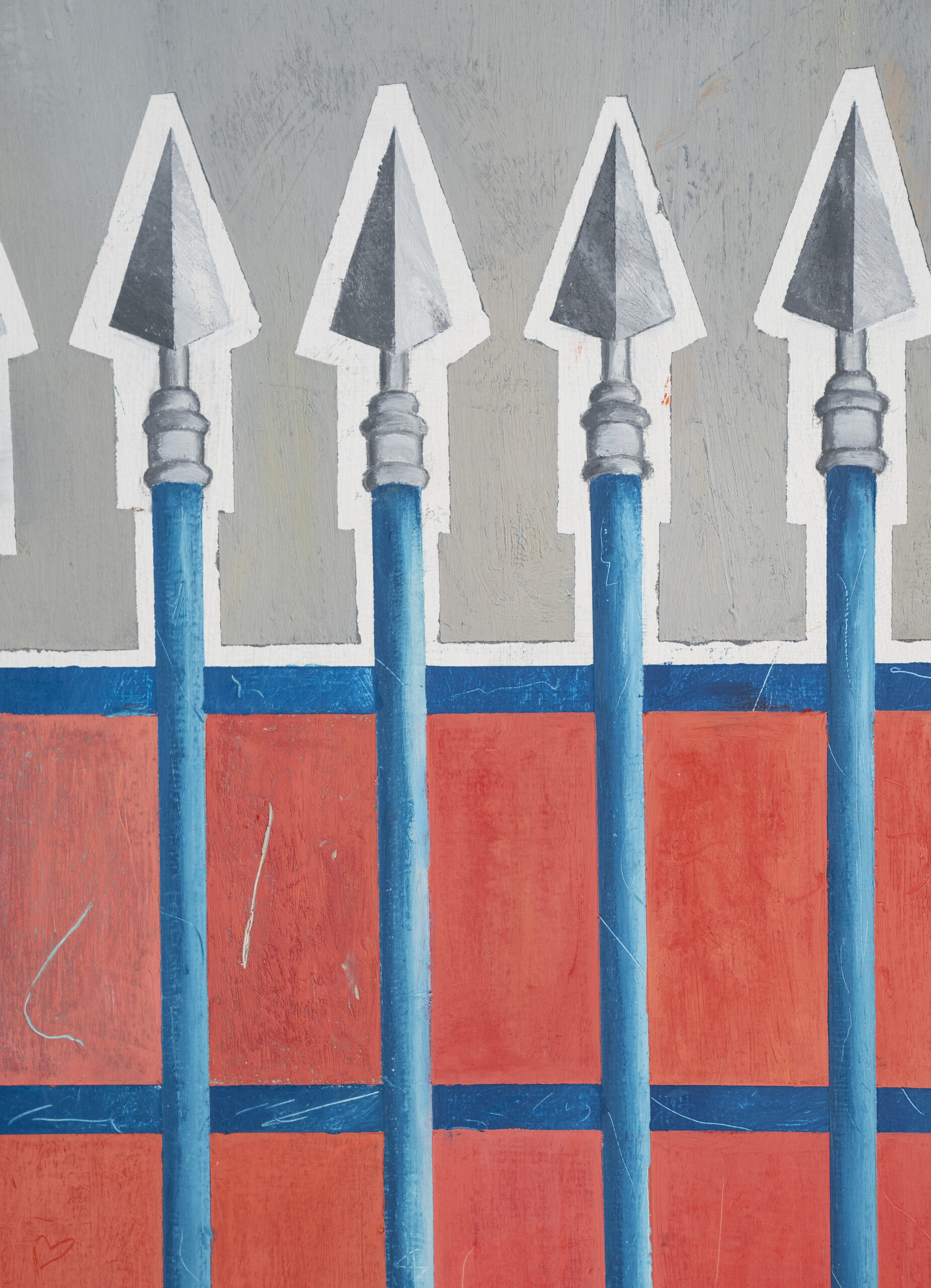 Maurice Blanchot³ caracteriza a banalidade do cotidiano como a coisa mais importante. É como se a repetição fosse profunda e simples ao mesmo tempo. No caso, os objetos pintados são artefatos que acabam se misturando na funcionalidade, ao mesmo tempo que constroem parte da paisagem cotidiana. São coisas para as quais estamos sempre olhando, por isso nunca parece que estamos as observando pela primeira vez, mas toda vez as observamos novamente. Na medida em que articulamos esses objetos, o cotidiano está sendo criado e moldado. Contudo, através da repetição, certas práticas, gestos e ações são apagados ou obliterados por conta de uma internalização. Mas não só. Esse espaço é atravessado por normativas, como dito anteriormente. Observar as construções visuais das pinturas de Fábio Menino também pode ser uma forma de tentar nomear esses gestos, que não podem ser neutros.