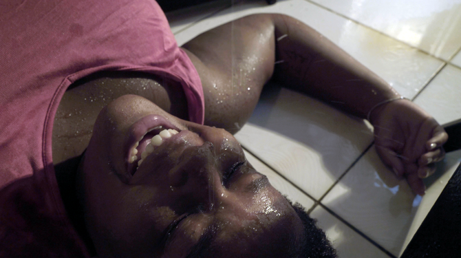 Instalação de vídeo em quatro canais com som. Com quatro telas de vídeo, ventiladores, cabos e banquinhos tortos. Dimensões variáveis. Realizada em colaboração com Andrea Capella, Varinia Canto Vila, Laura Samy, Lara Negalara, Nyandra Fernandes e Michelle Chevrand.